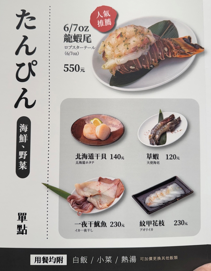高雄食記【魚京燒肉】大份量的日本A5和牛盛合/好吃的紋甲花枝/烤蝦之前記得要先剝殼/意外好吃的黑糖蜜黃豆粉冰淇淋((附菜單