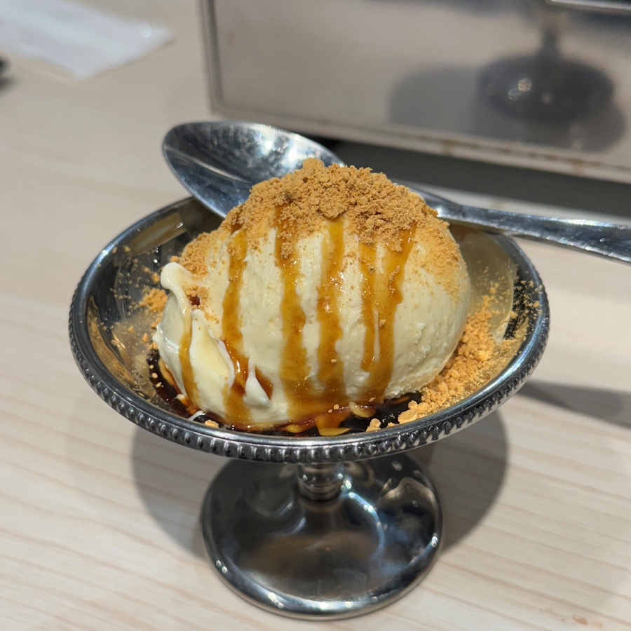 甜點的黑糖蜜黃豆粉冰淇淋也是三訪魚京燒肉的小驚喜,