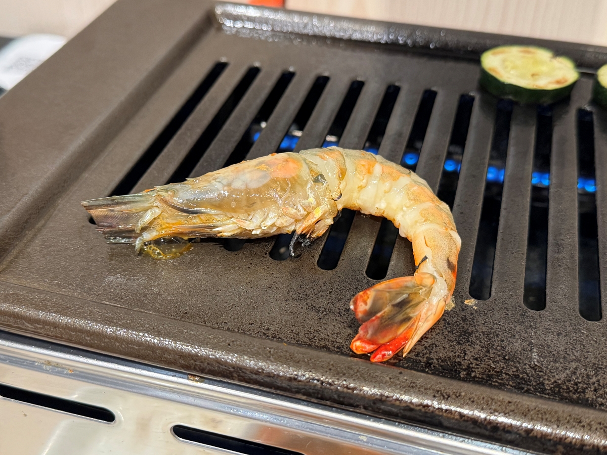 蝦子剝殼之後去烤,口感上好很多,而且不黏殼,