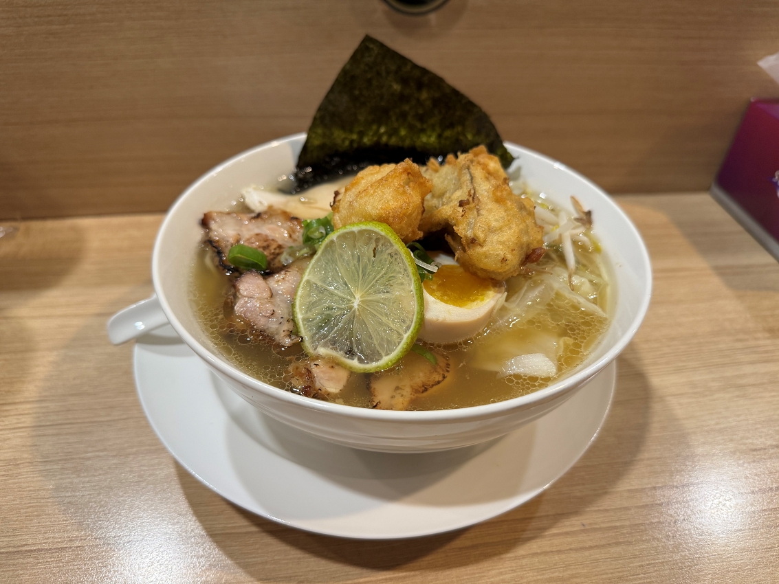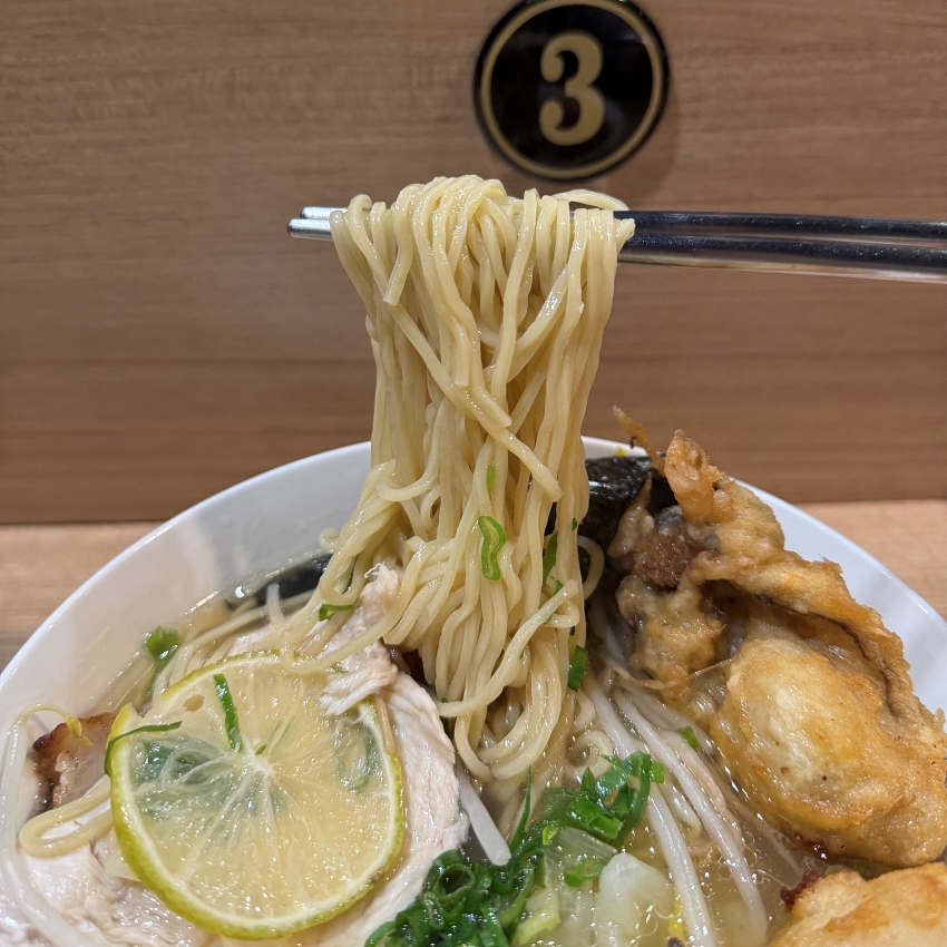 一樣從湯,麵,料,三個面向來看,這一碗香檸干貝牡蠣鹽味拉麵。