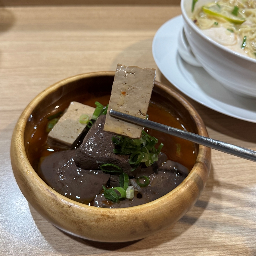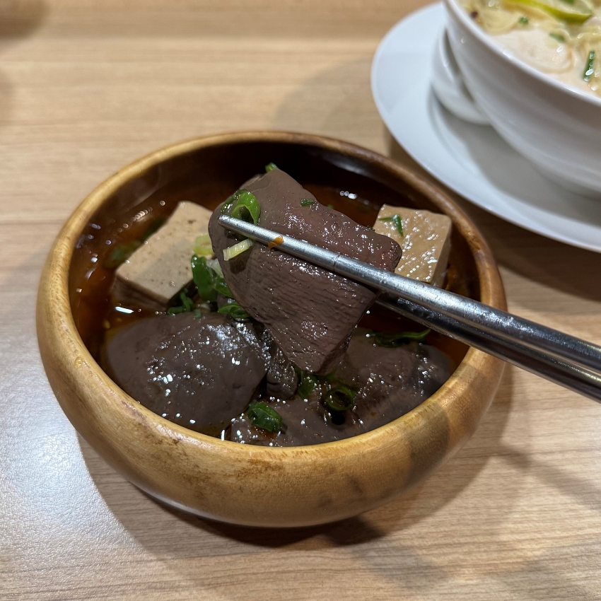 鴨血軟嫩,而豆腐紮實,可以用來轉味,也增添一些飽足感。