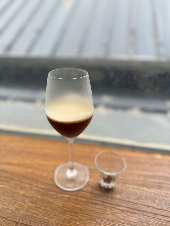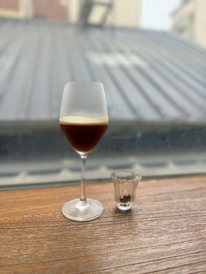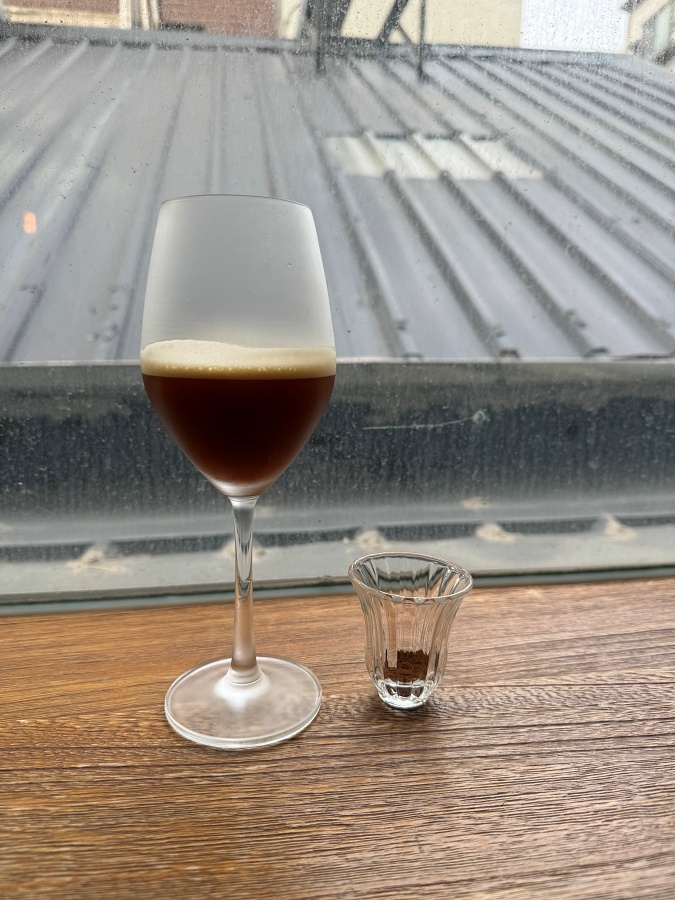 用高腳杯來喝咖啡,這跟我印象中的美式有所不同,
