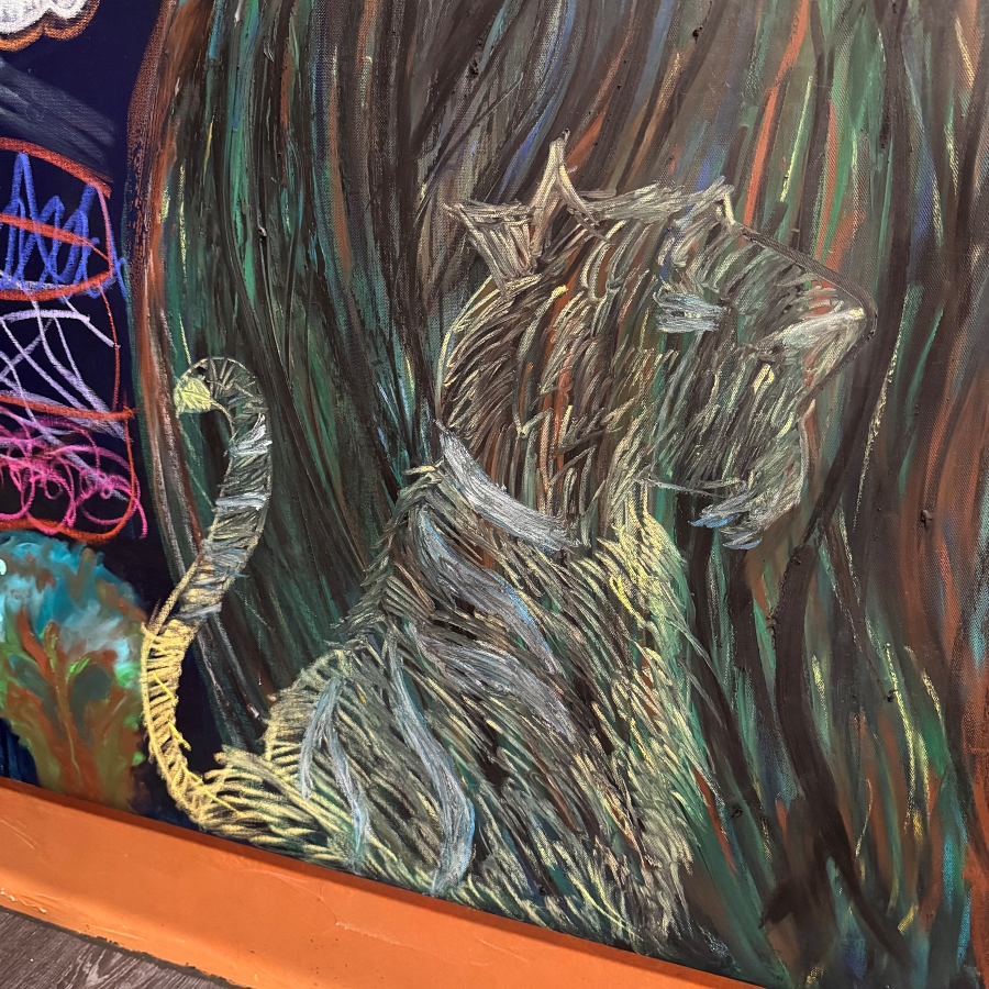 我特別喜歡這一隻藏在畫裡頭的小狗,沒有很明顯,