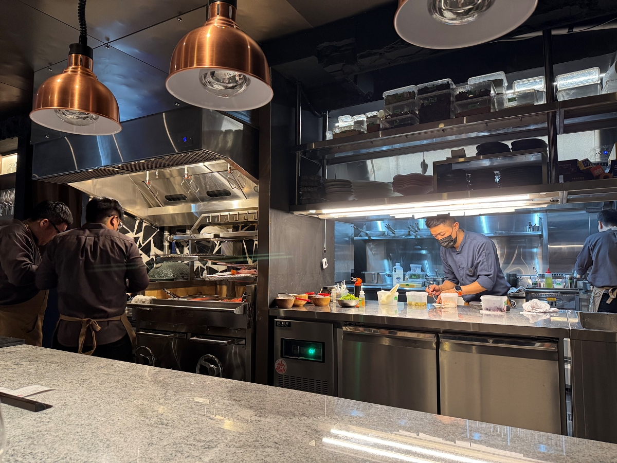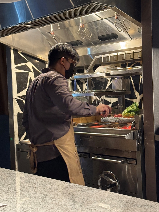 因為光是坐在吧檯就可以直面那綠蛋以及兩個炭火升降台。