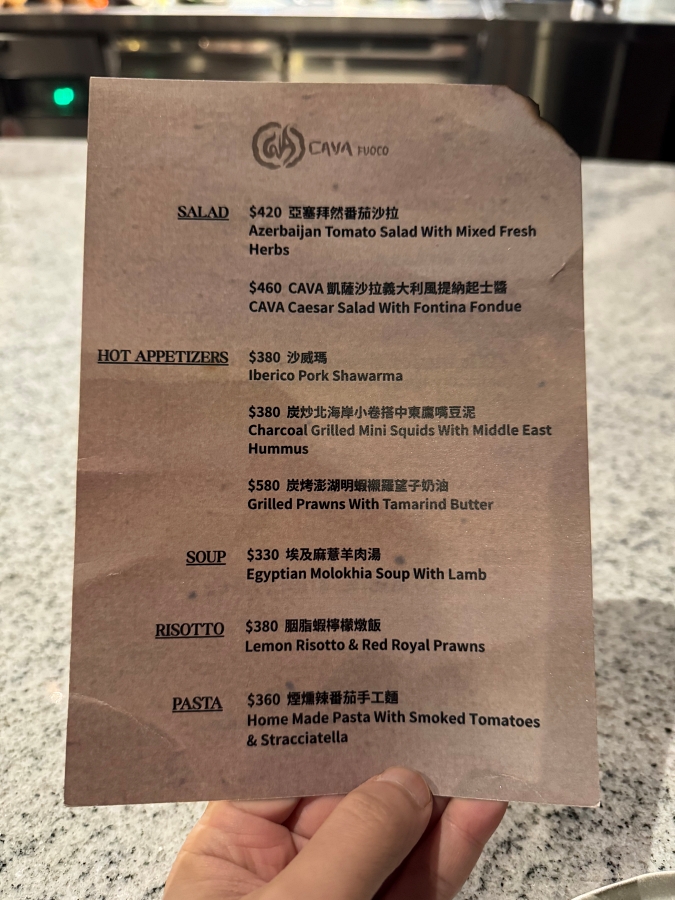 Cava fuoco目前還在試營運的階段,菜單的品項有點少,
