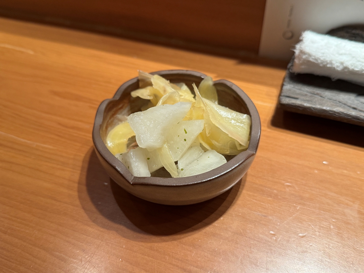 初魚鮨的醃蘿蔔偏酸,一次無法吃太多,