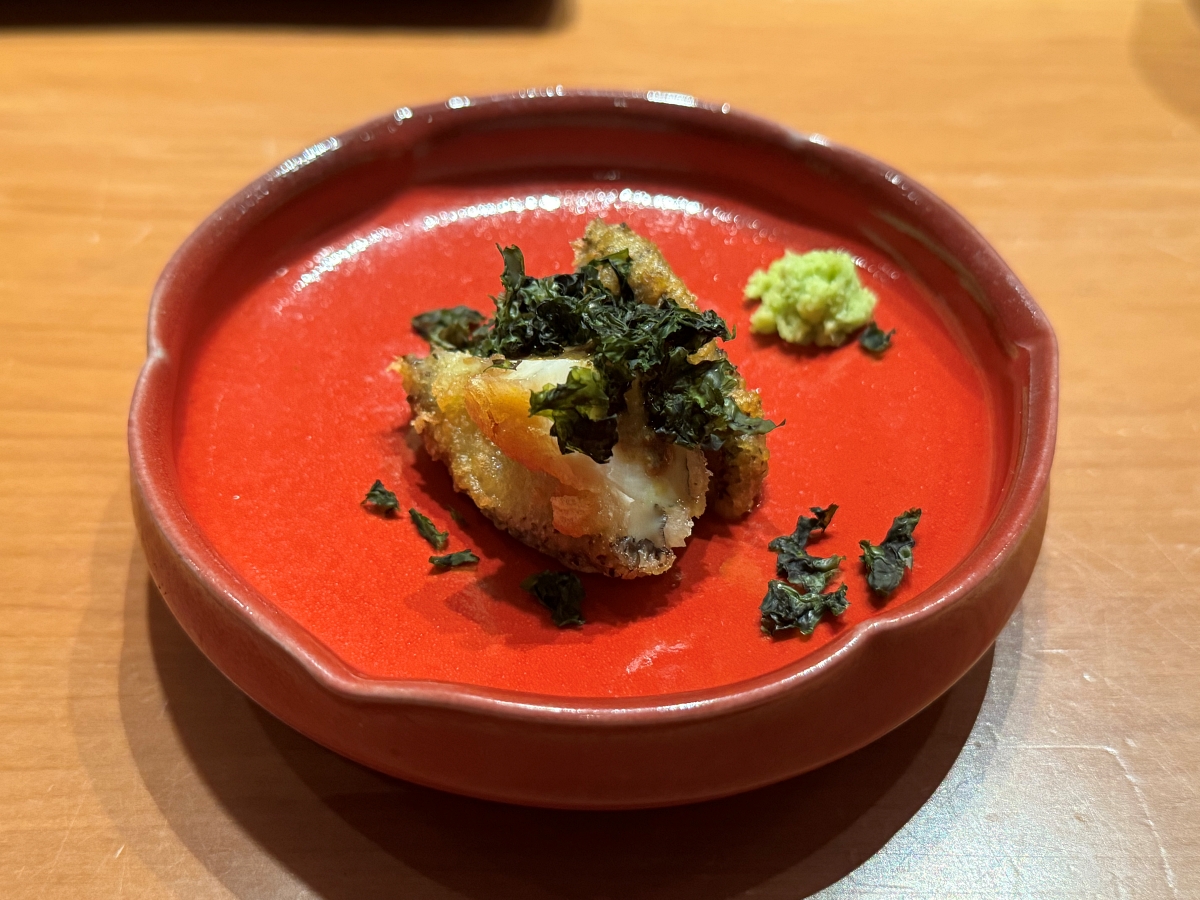 中間的鮑魚口感軟彈,不過可惜的是外皮有些不夠酥脆,