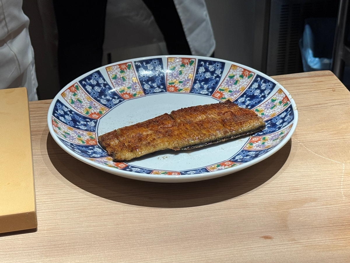 剛烤好的鰻魚還有些燙手,魚皮帶點脆度。
