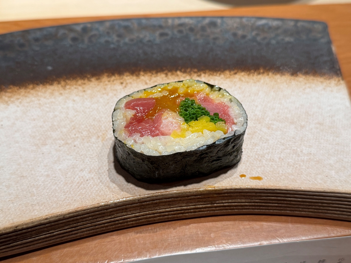 中間捲入了一些黑鮪魚赤身,中腹,大腹的邊角料,