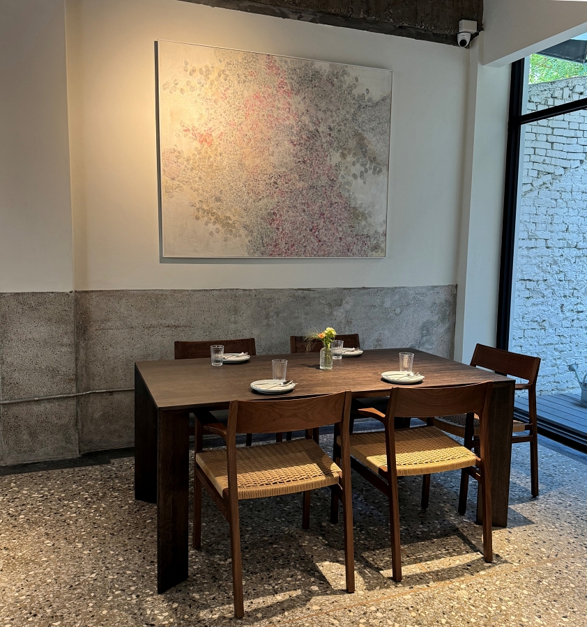 入座會看到帶點現代風格的裝潢與老屋磨石子地板的歲月之痕。