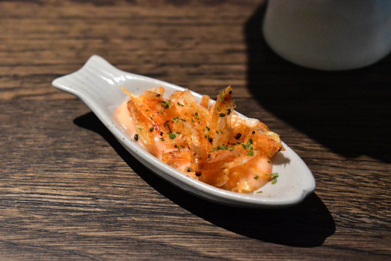 不只是在美乃滋當中有拌入櫻花蝦粉,上頭還鋪滿了滿滿的櫻花蝦。