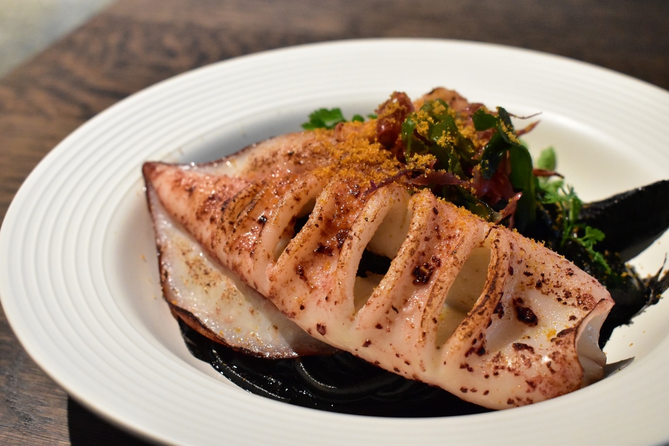用上了整隻炙烤過的中卷,再撒上一些花椒,烏魚子,
