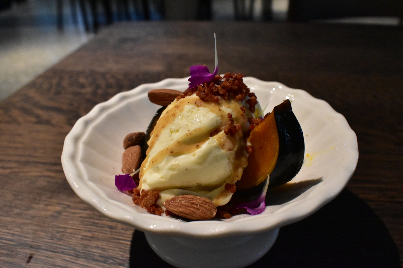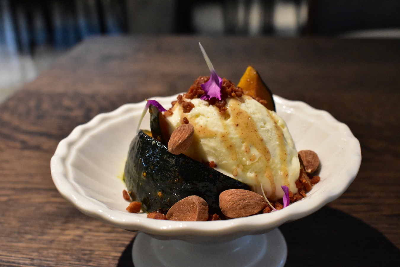 底下用的是栗子南瓜,上頭則是香草冰淇淋以及焦化奶油。