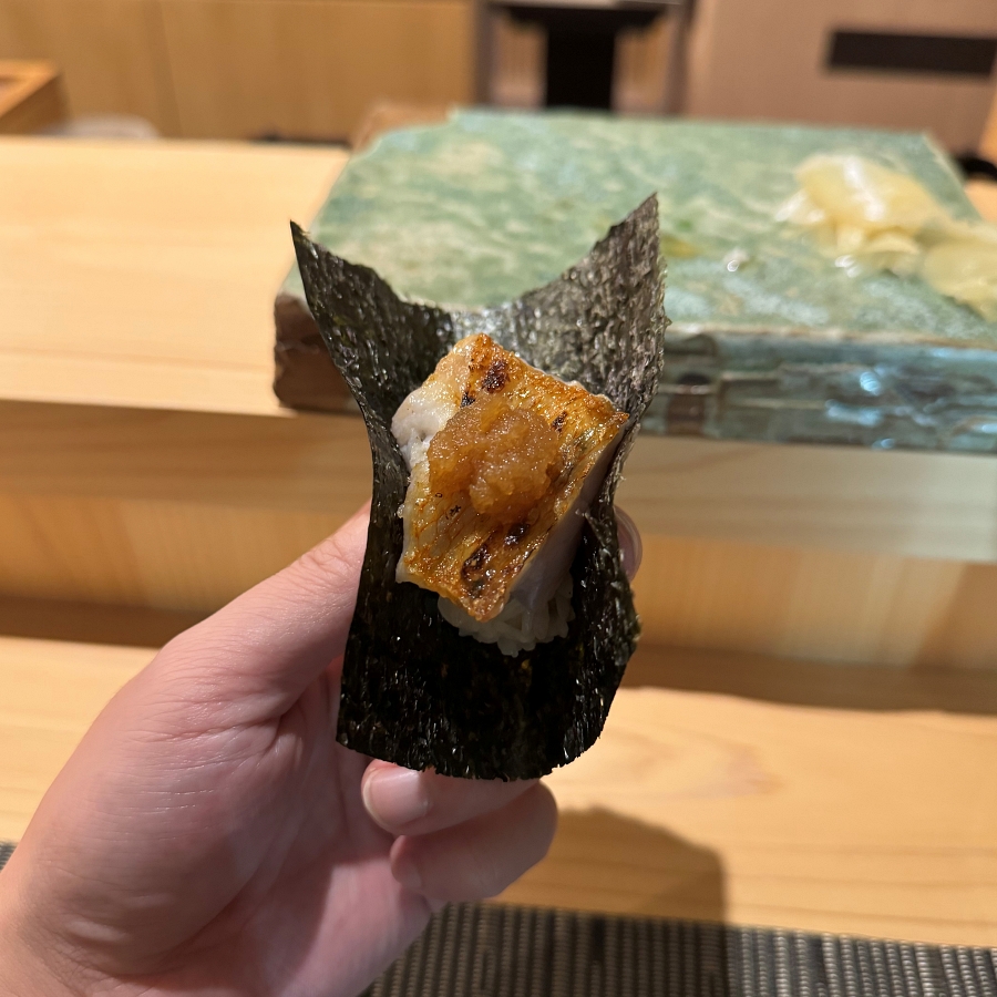 第十一貫:烤喜知次 肝臟 醬油蘿蔔泥(250元)
