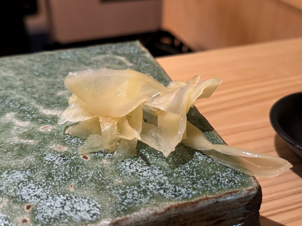 枝豆えだまめ的薑片吃起來先酸後甜,帶點脆度,之後則是辛辣味。