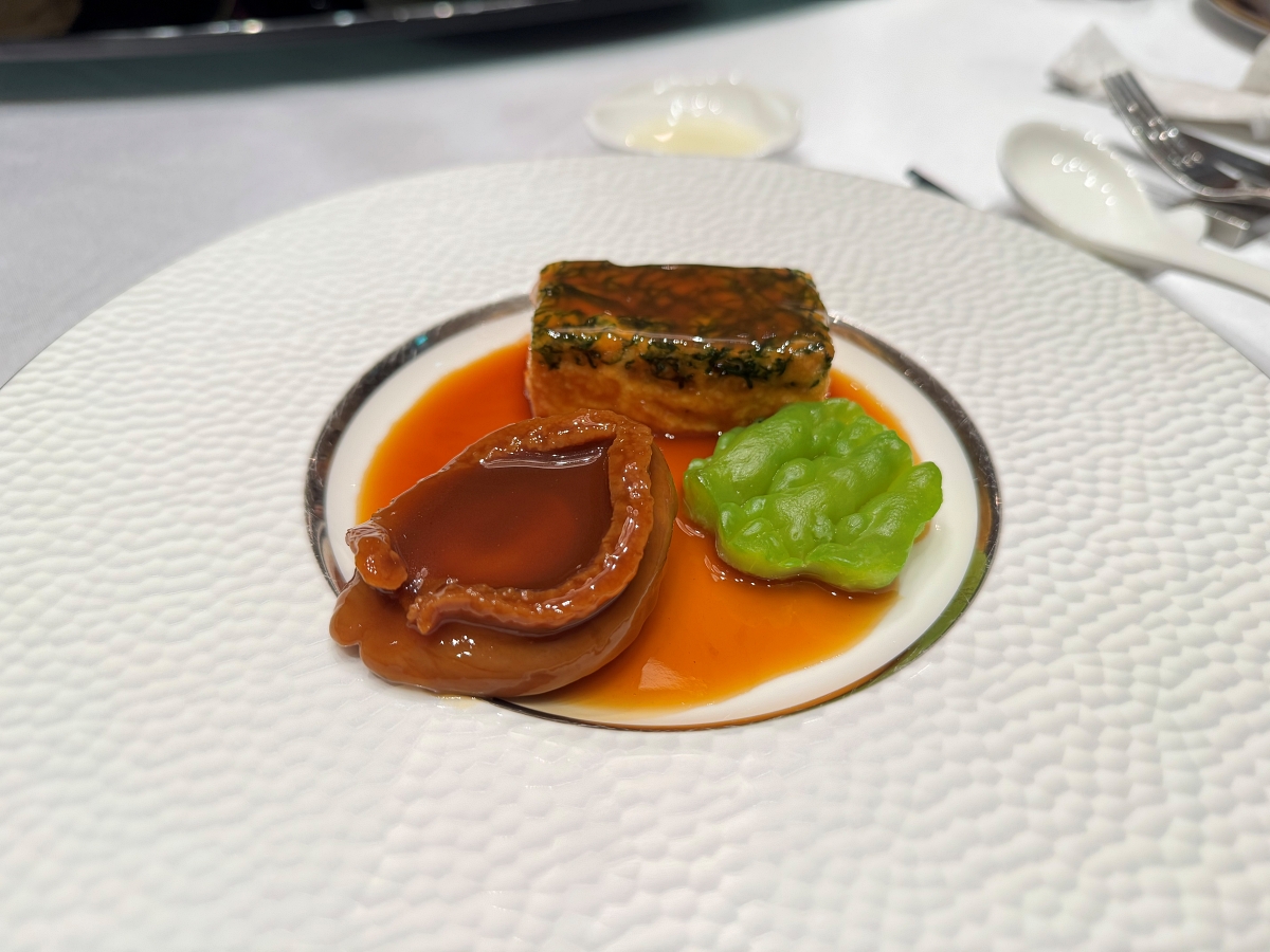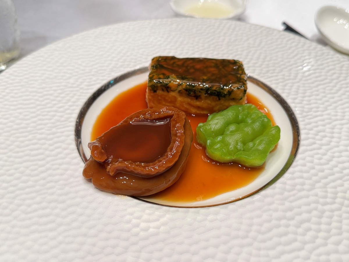 Braised Abalone in Oyster Sauce with Spinach Tofu