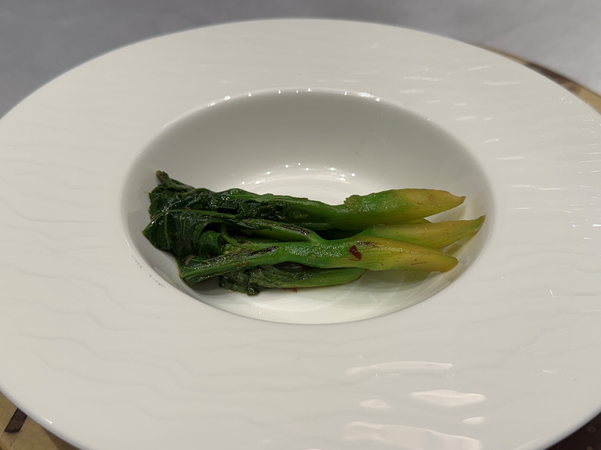 吃起來可以感受到芥藍的清脆與醬汁的微辣。