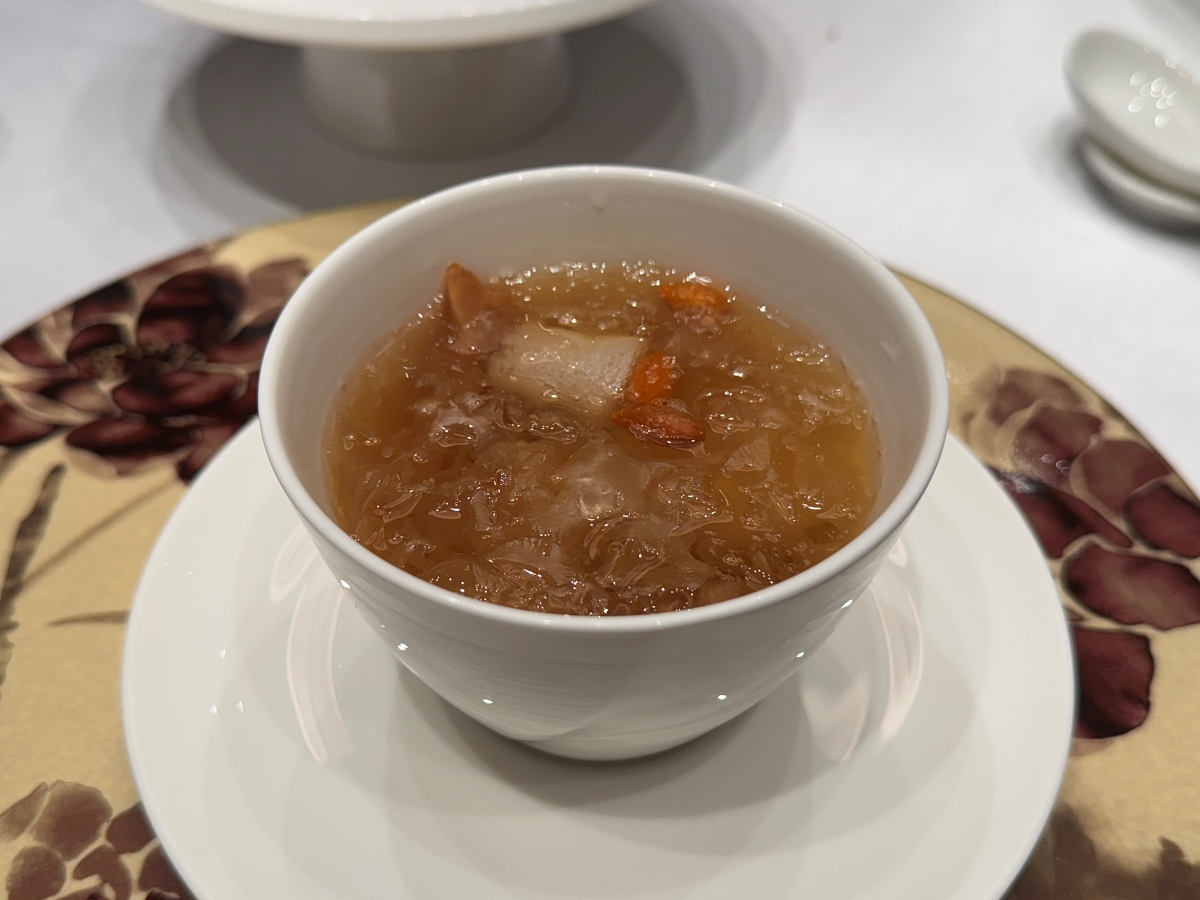 Double-boiled Shark’s Fin with Sea Whelk and Hami Melon