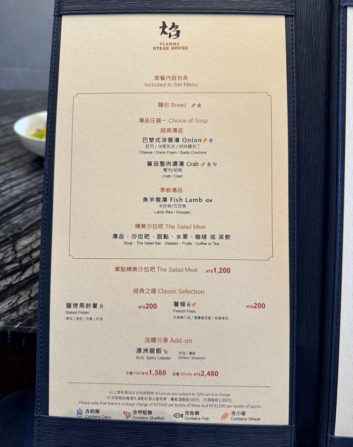 高雄美食【焰 牛排館】換季新菜單/美國1855紐約客/洋蔥湯新風貌/季節限定魚羊燉湯/沙拉吧無限自助((菜單