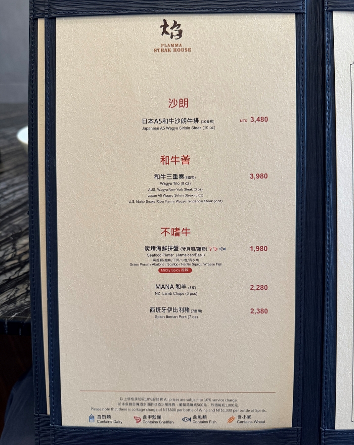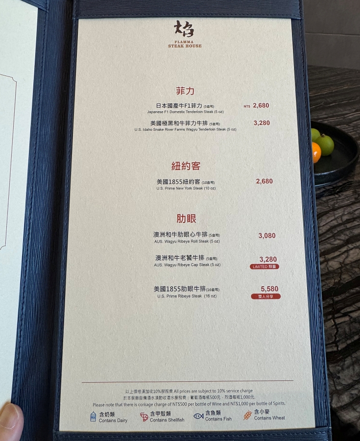 美國1855紐約客跟日本A5和牛沙朗是焰 牛排館目前單人份的牛排中,份量(10盎司)最大的,