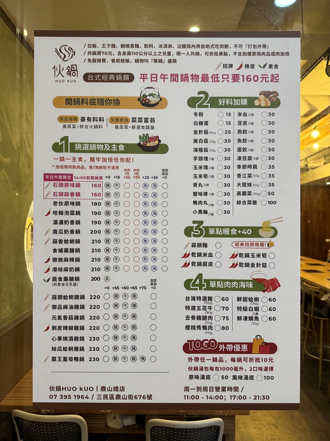 高雄美食【伙鍋 Huo Kuo】乾淨明亮的個人獨享鍋/蒜頭蛤蜊雞鍋/老伙原味鍋((附菜單