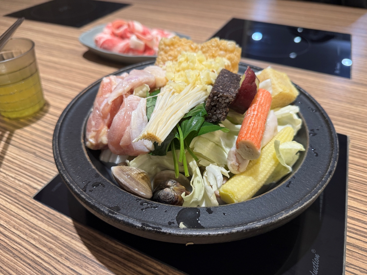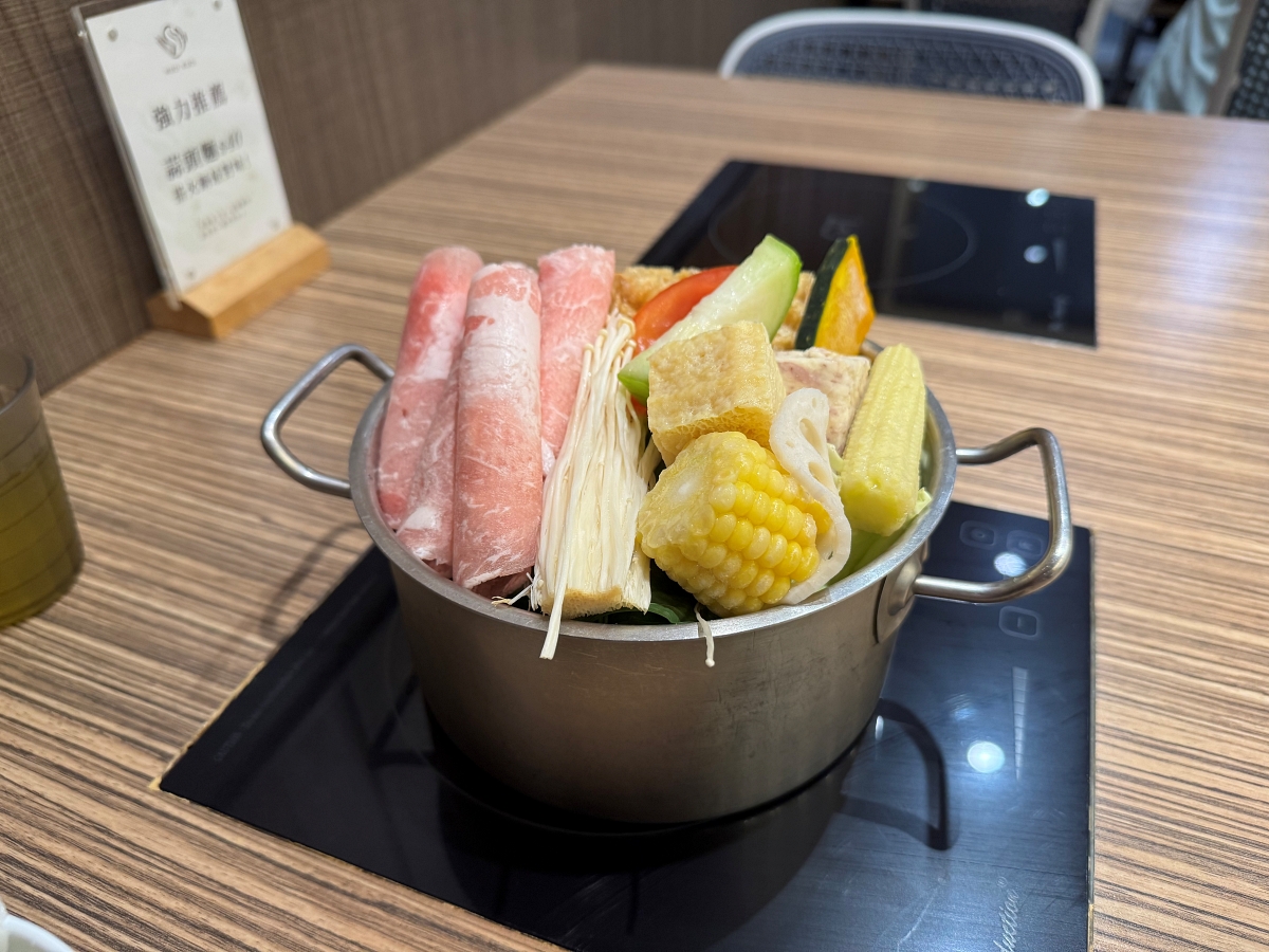 這個是女友點的豬肉鍋,配料搭配的是菜菜富翁,也就是沒有火鍋料,全部都蔬菜。