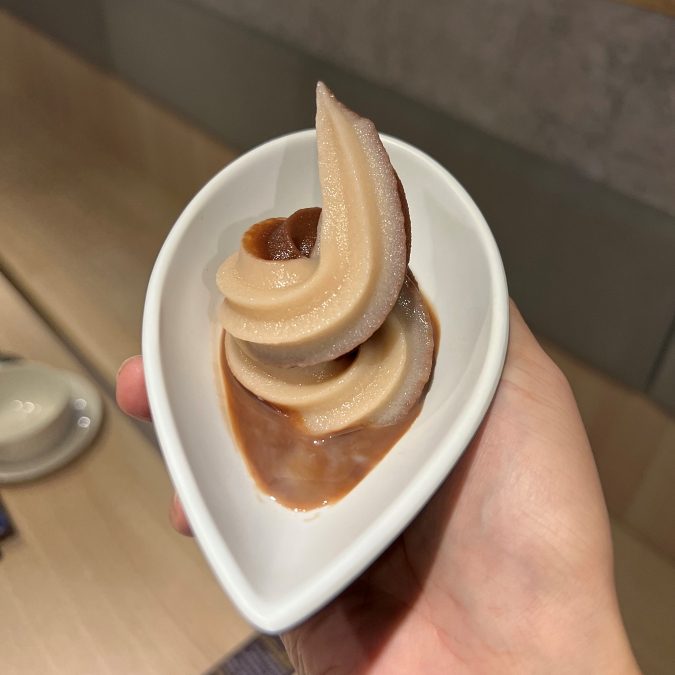 相比於冰淇淋,這個霜淇淋吃起來軟了很多,也帶點沙沙的的口感,