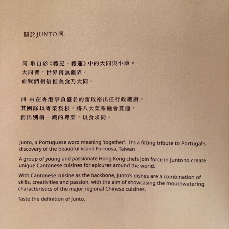 JUNTO 同是台北近期新開的粵菜餐廳,