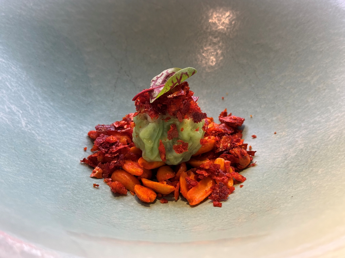 右邊的萊姆醬汁適合在第一口品嚐完原味之後,滴入幾滴增加清香。