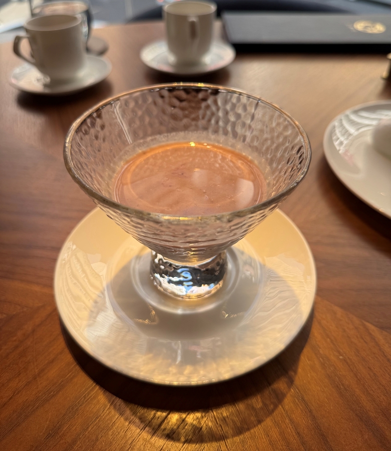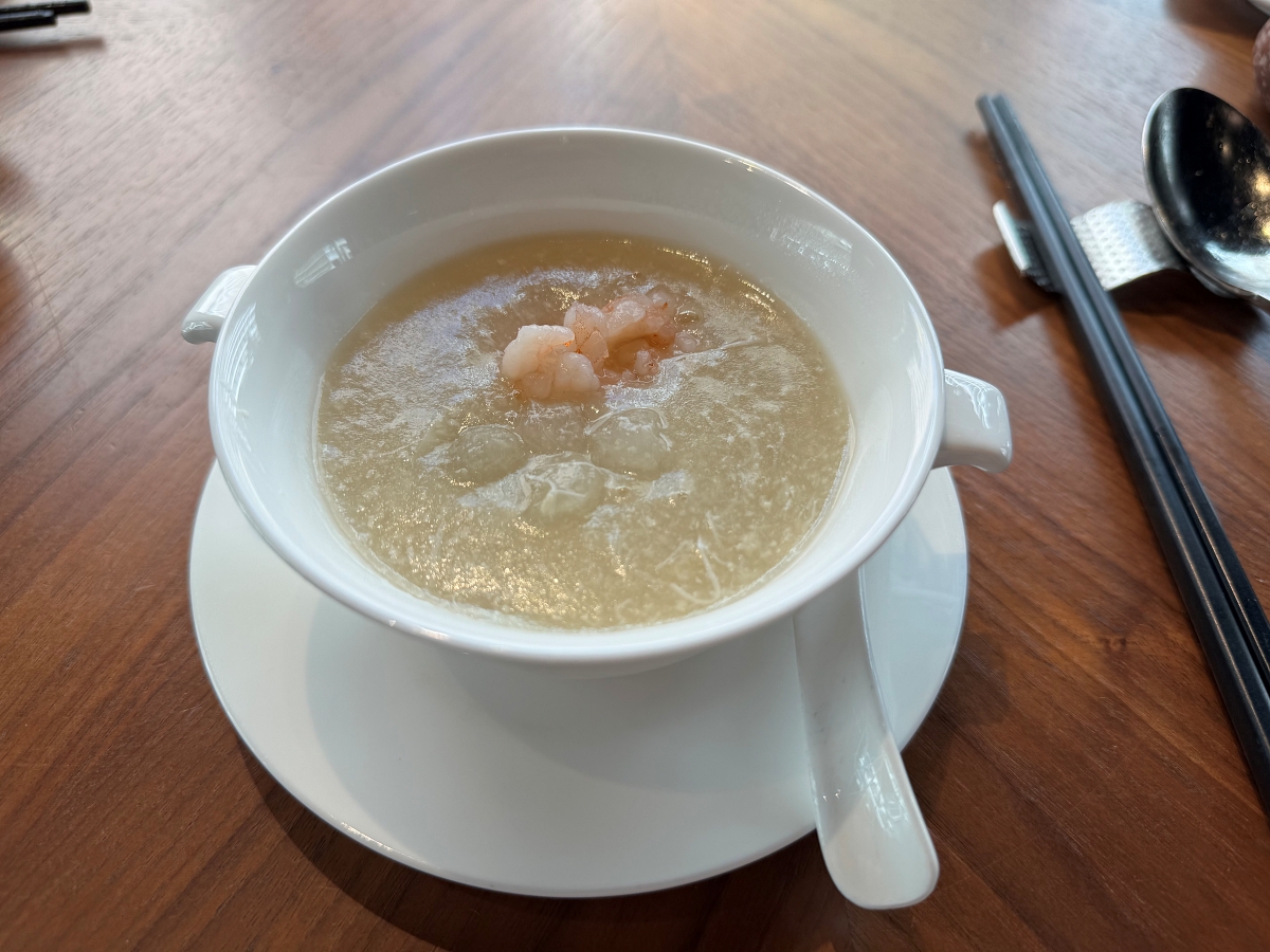 也比隔天在米其林一星餐廳 雅閣喝到的「港式老火湯」與「羊肚菌竹笙燉瑤柱」,