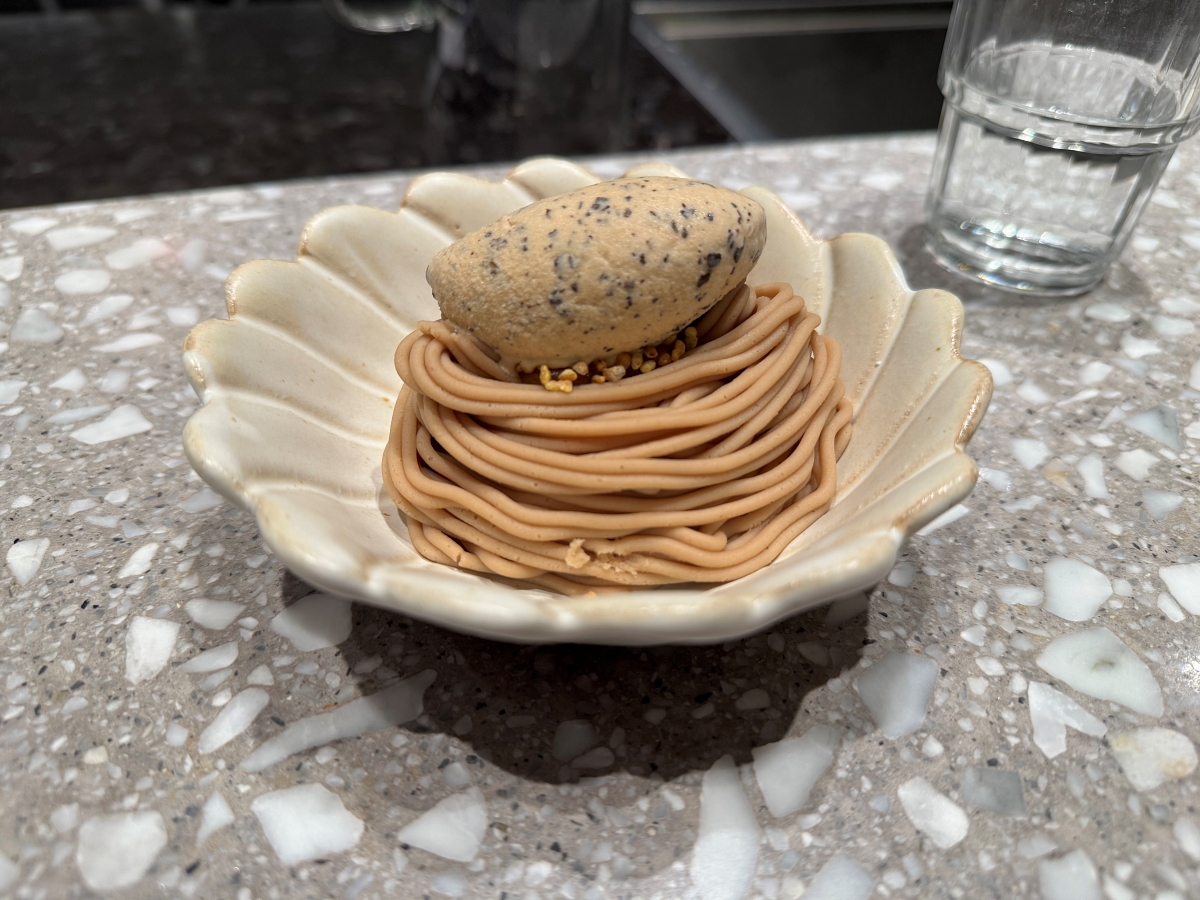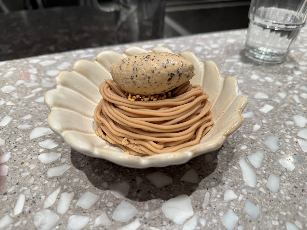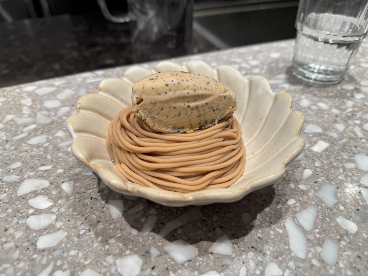 是一種我沒有在蒙布朗類型的蛋糕中吃到過的口感,很有趣,