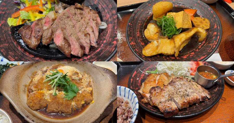 屏東美食【大戶屋 屏東市環球店】好吃的炭烤牛排定食/皮油肉軟嫩的醬煮龍虎斑定食/超下飯的滑蛋豬排鍋定食/一次雙饗 炭烤雞豬雙麴定食