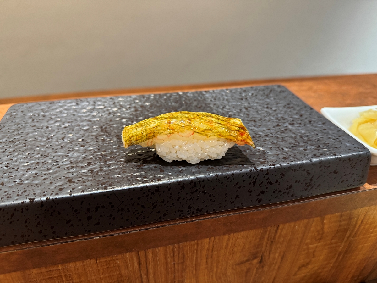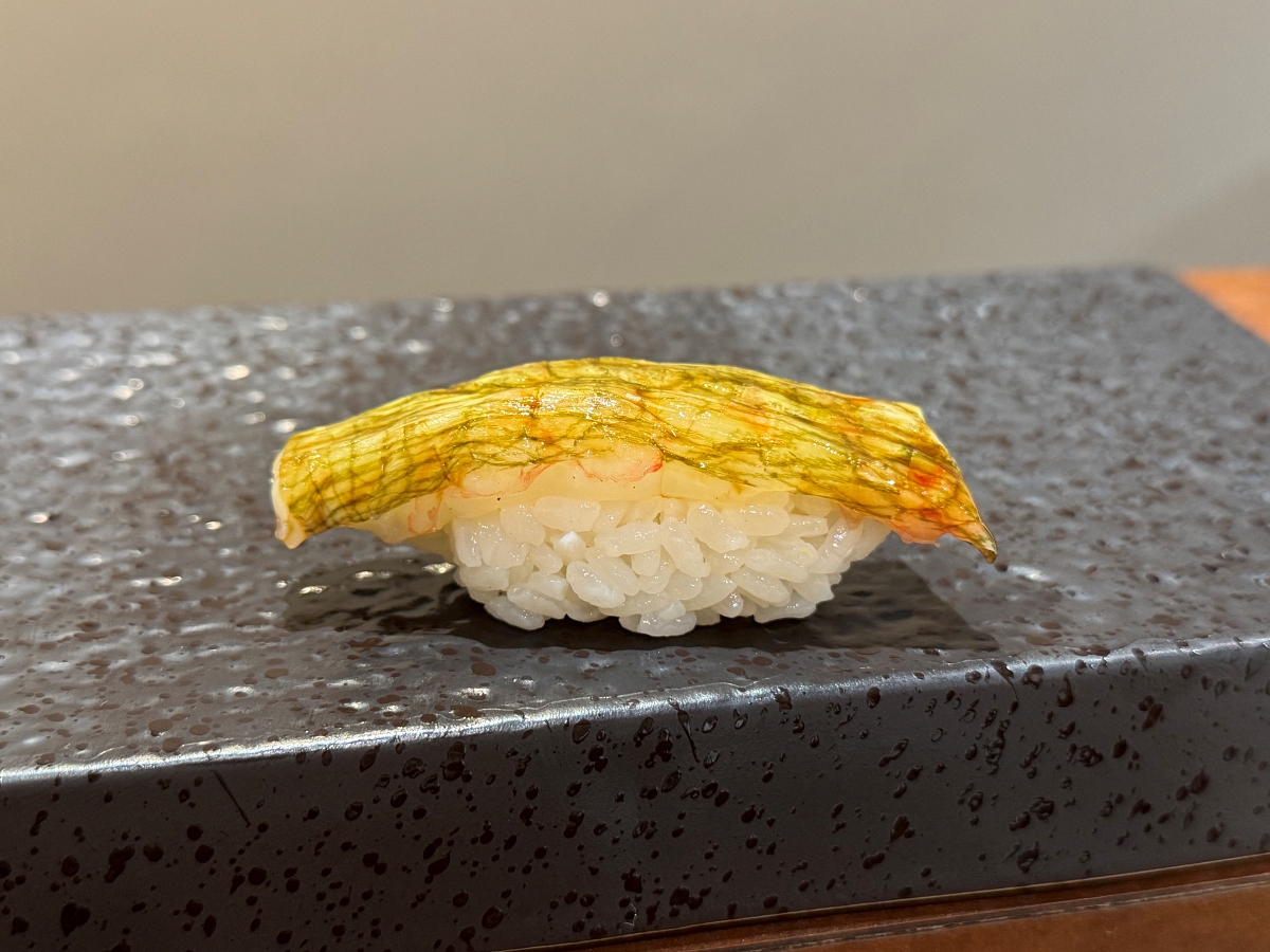 入口之後不只是會感受到甜蝦的甜,也會感受到昆布的鮮,是一個很美味的海味爆擊。