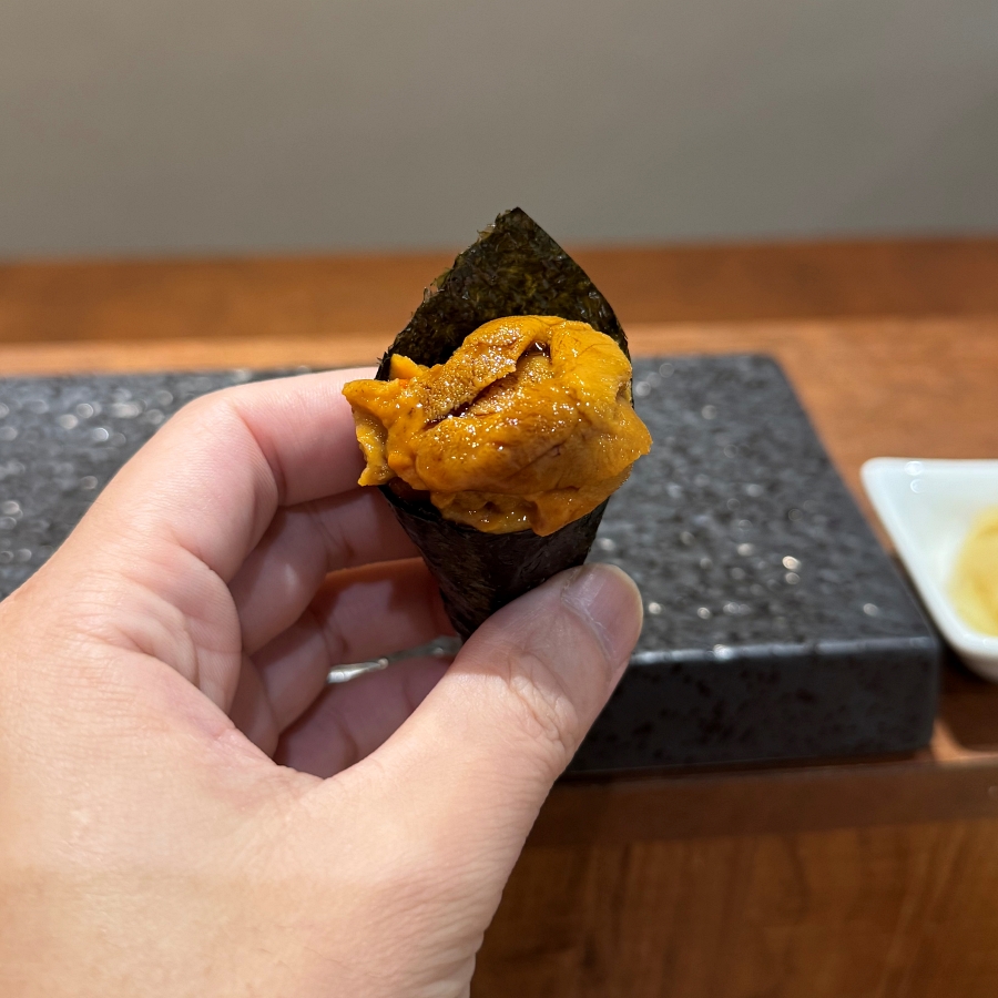 台北美食【鮨序すしじょ】鮮甜好吃的赤海膽 炸紫蘇葉/口感脆脆的鰻魚手卷/活松葉蟹肉茶碗蒸
