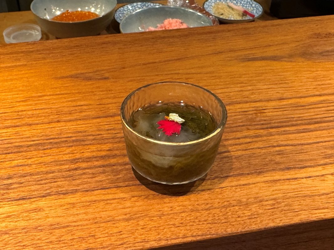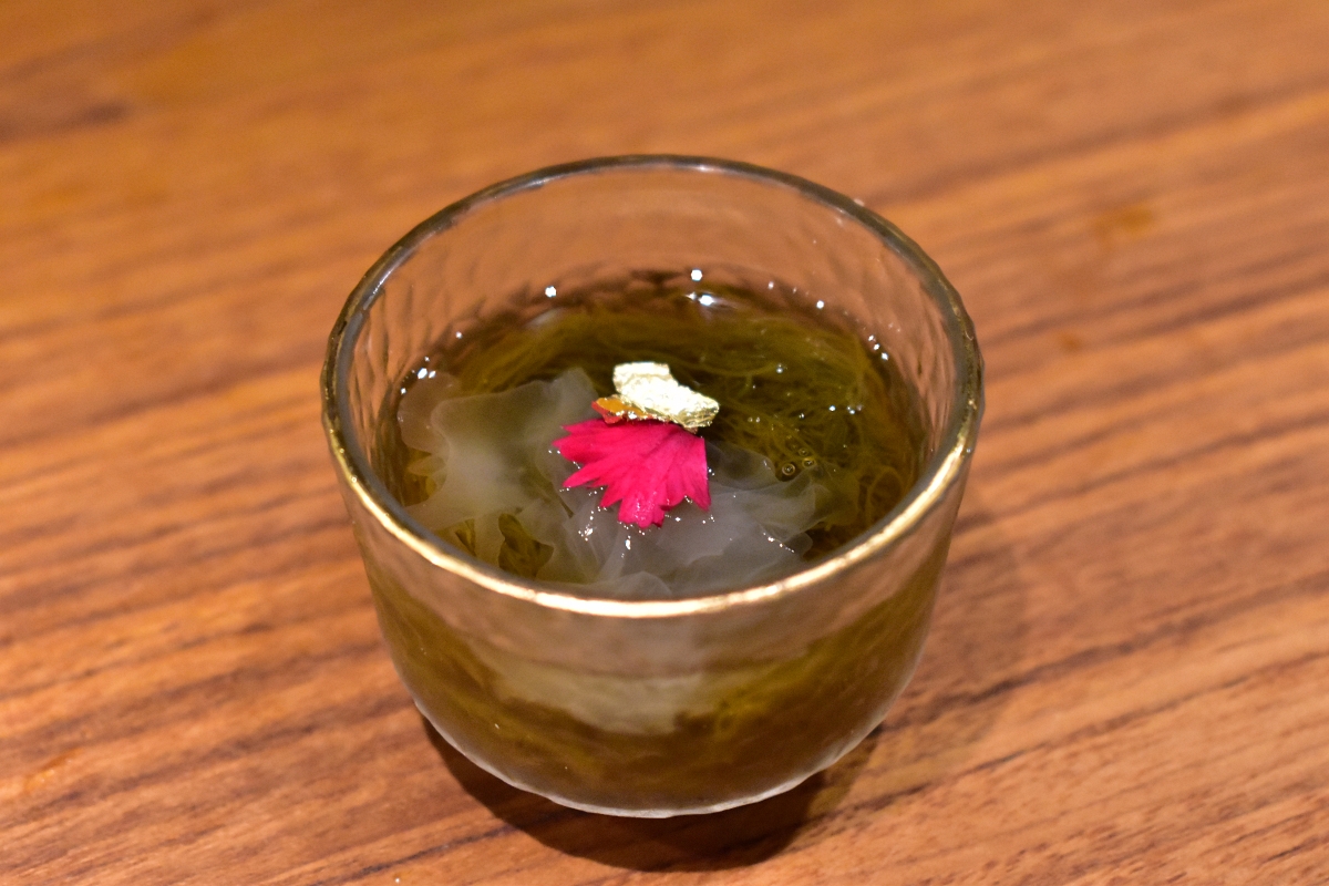 開胃菜是水蕓醋,在日本料理中很常出現,