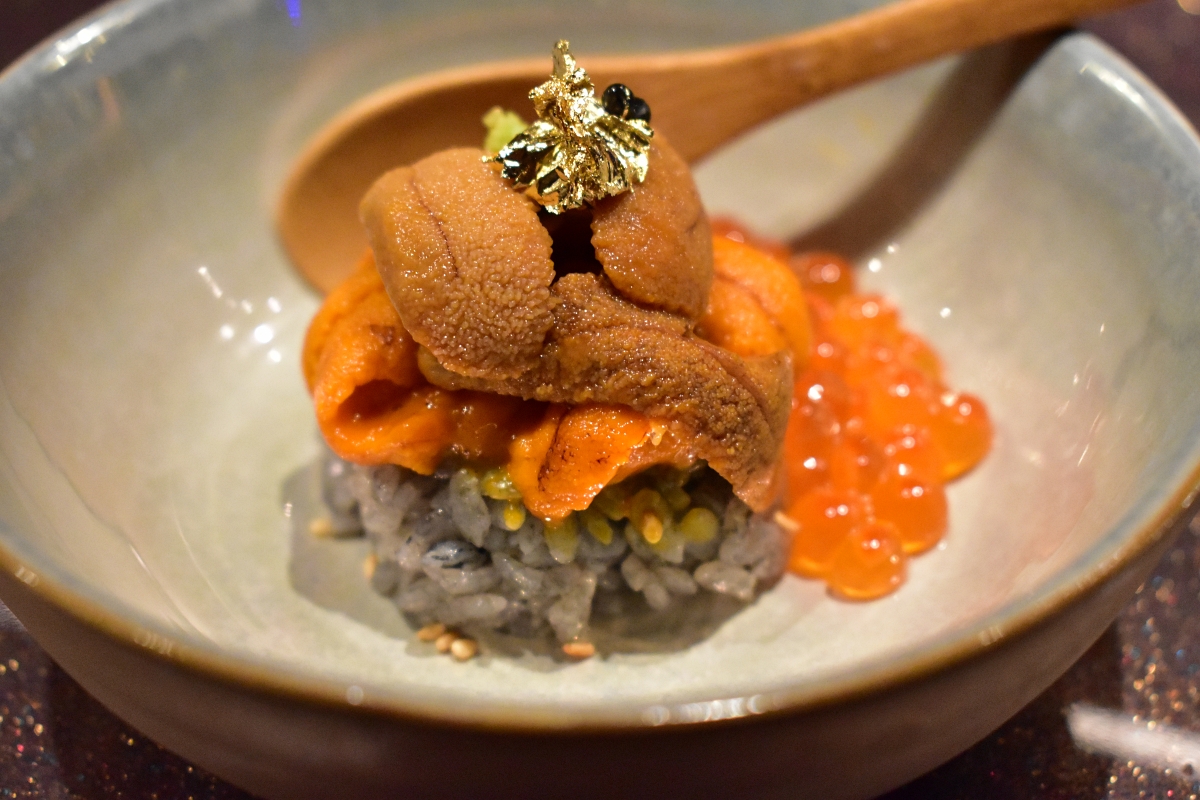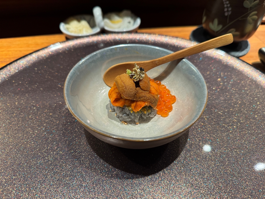 用上了兩種不同的海膽,搭配鮭魚卵,
