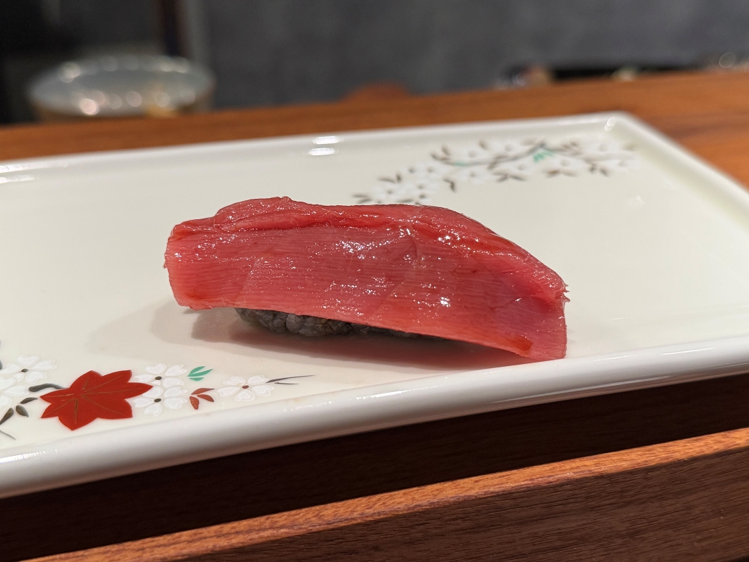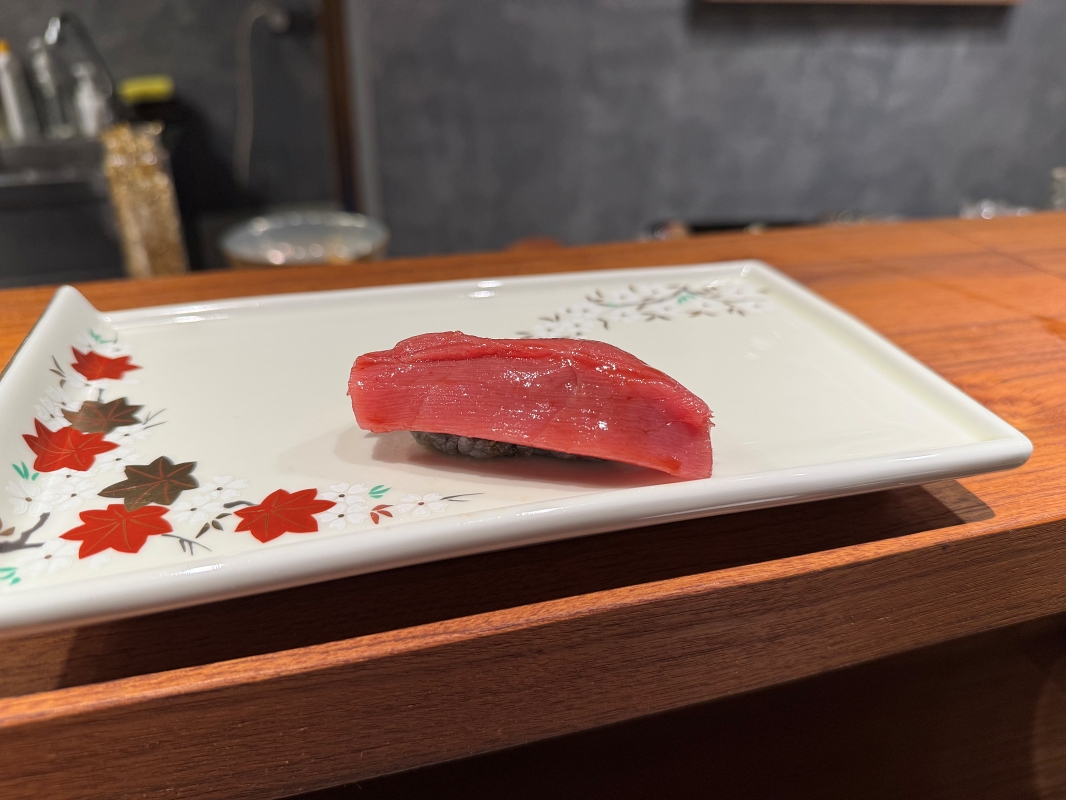 黑鮪魚赤身(右前)吃起來的口感軟嫩,鮮味很棒,好吃。