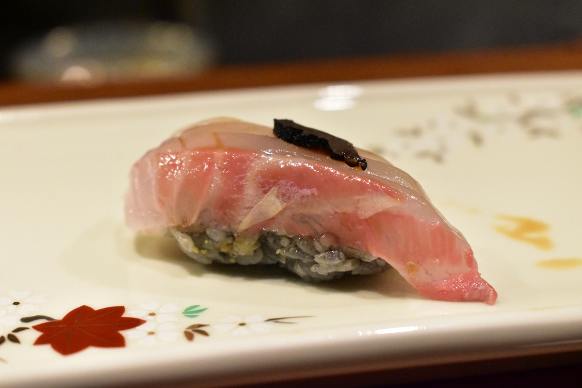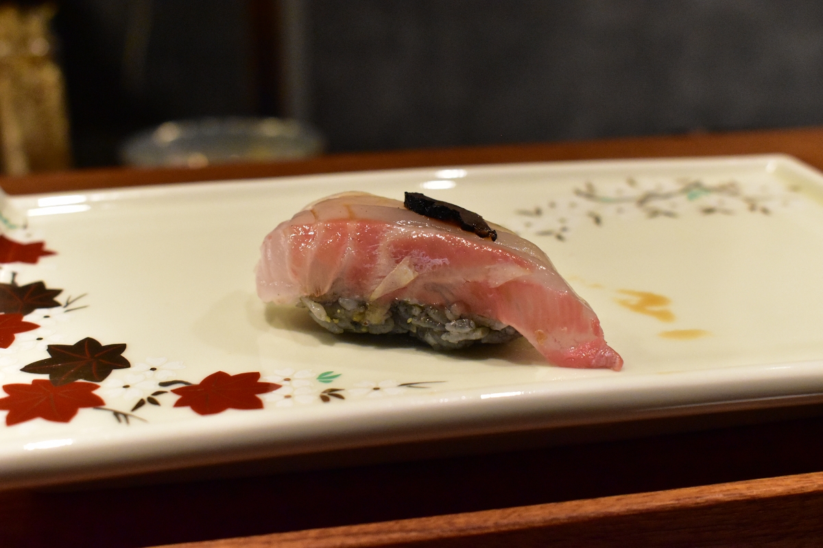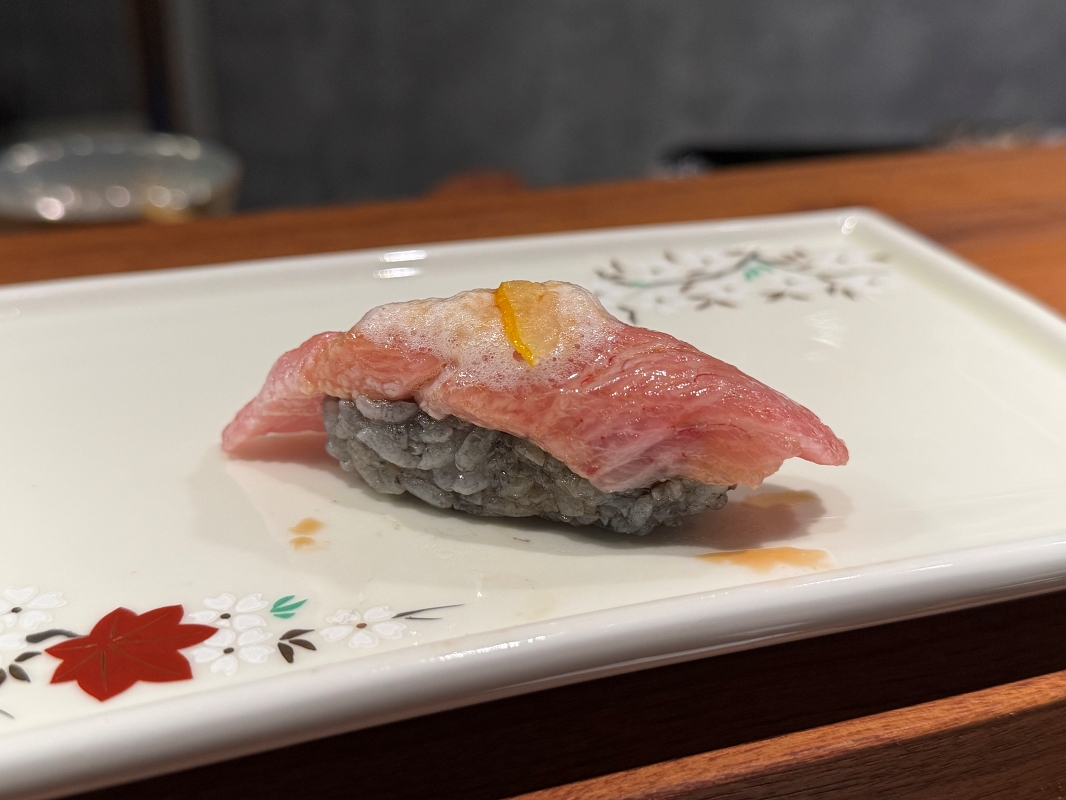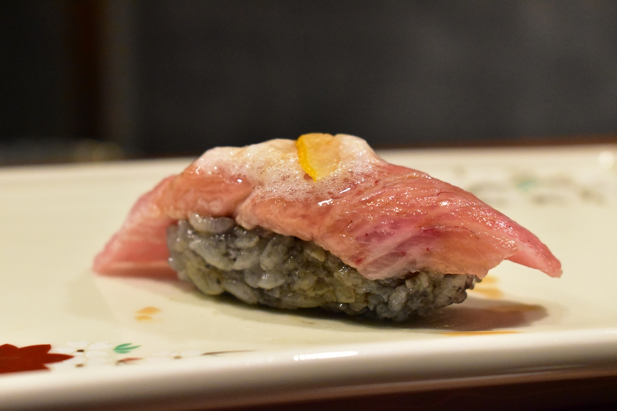 黑鮪魚大腹這個部位比較油一些,有稍微炙燒,逼出一些油脂,