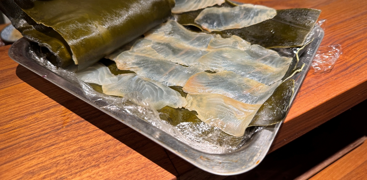 第五道:比目魚昆布漬 烏魚子 昆布絲