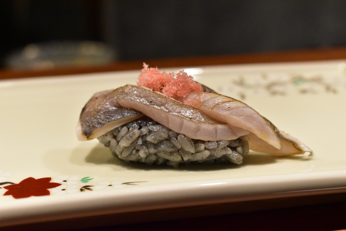搭配的醋飯是鮨千本特別研製的黑醋飯,