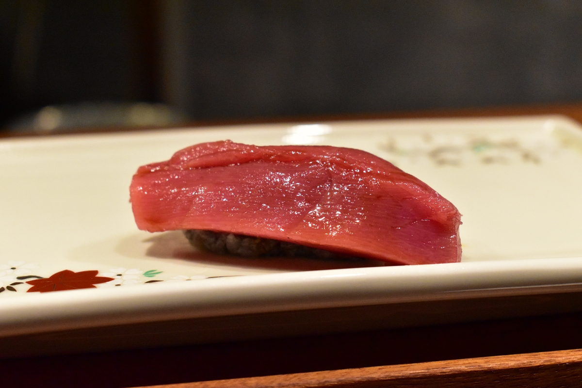 黑鮪魚中腹(右後)比起黑鮪魚赤身,吃起來更多了點油脂的嫩度,
