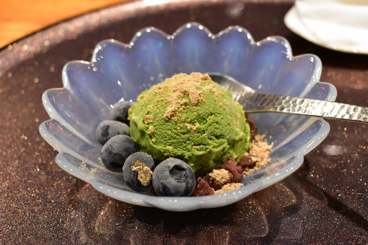 搭配上冷凍的藍莓跟黃豆粉與紅豆,不會太甜膩。