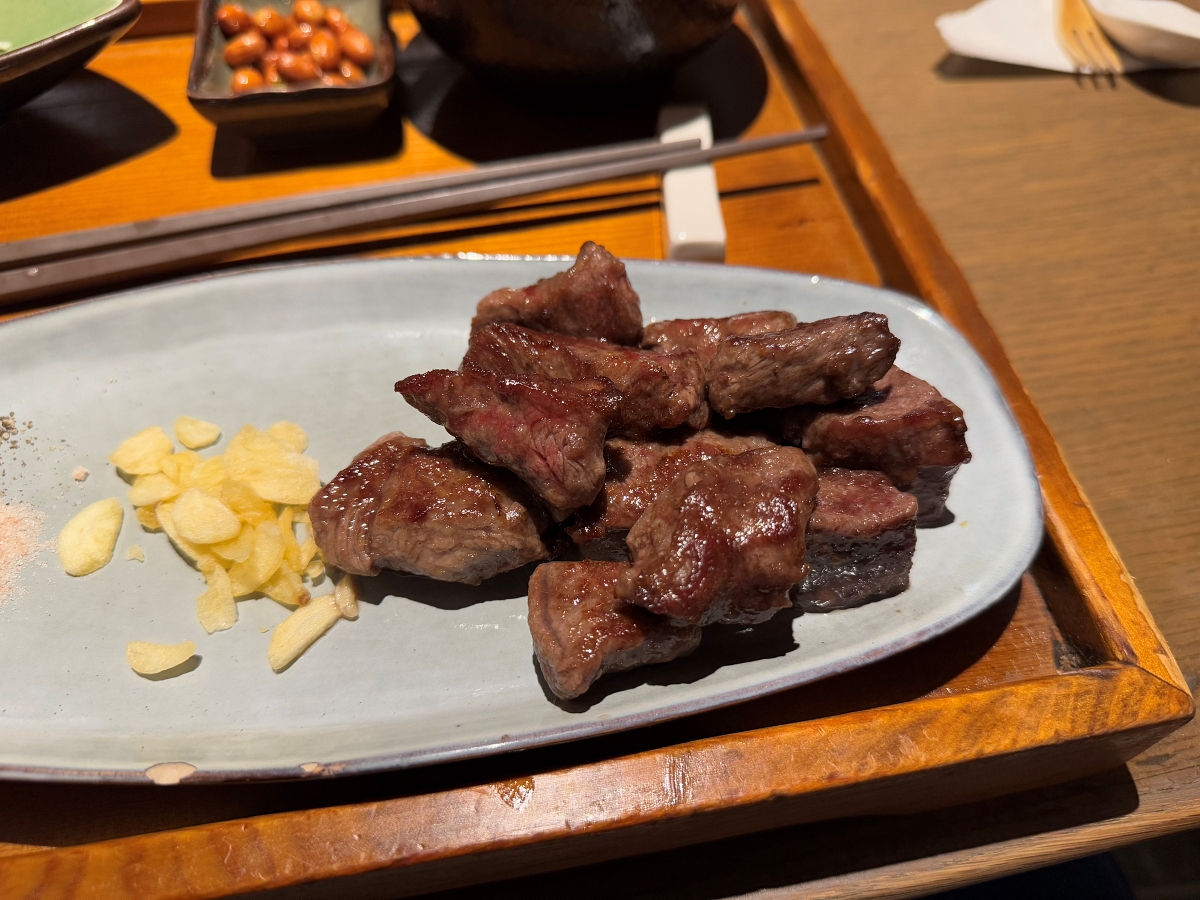 直接吃會覺得牛肉的味道稍淡,建議可以配點蒜片與鹽巴提鮮,也比較配飯。