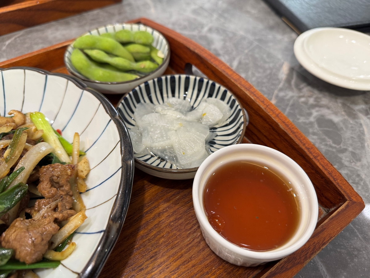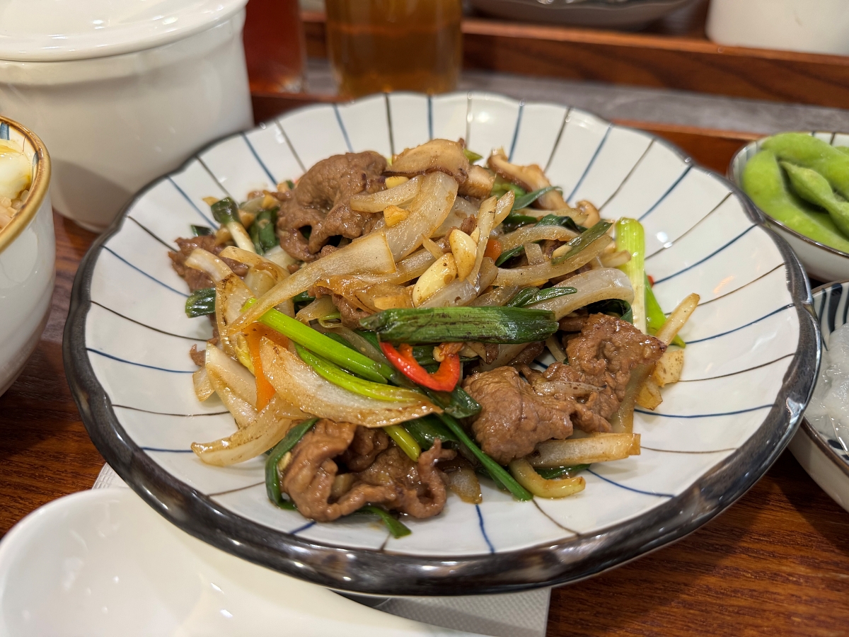 而如果不吃辣,可以吃牛肉,三餐暖食的蔥爆牛肉還滿好吃的。