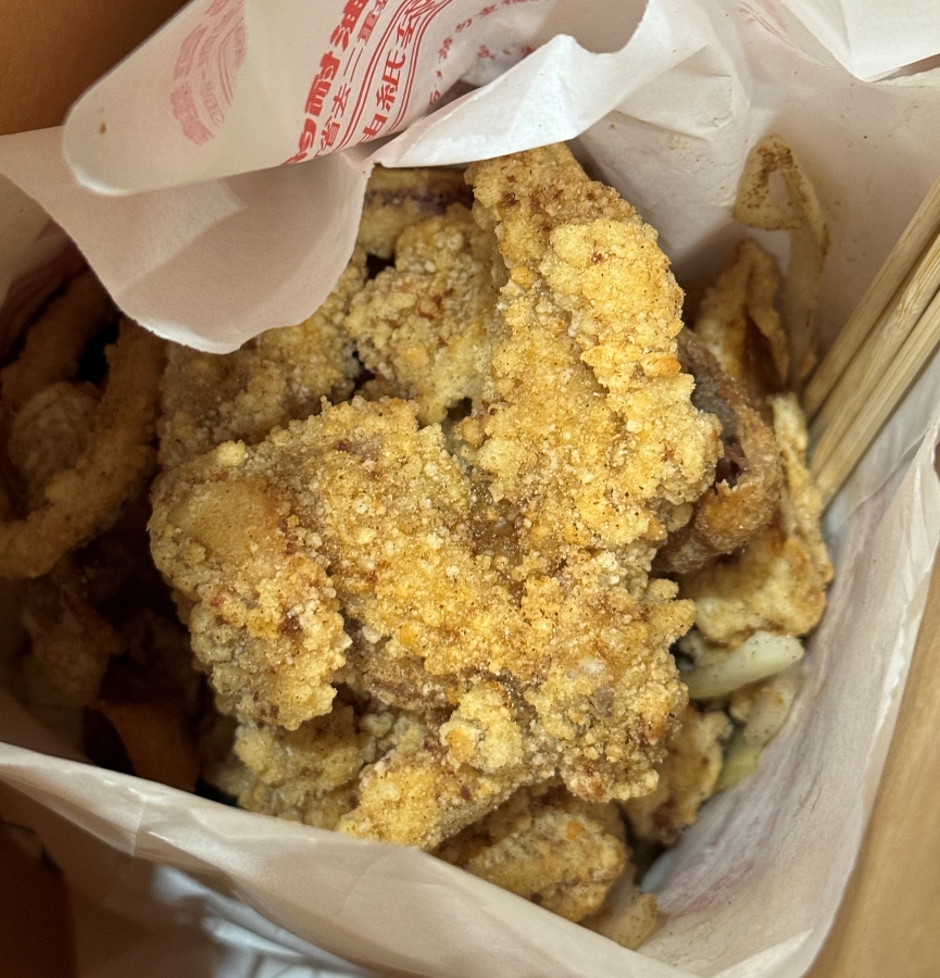 幸福平安鹹酥雞用的是魷魚圈,而不是大隻的魷魚腳或是魷魚肉,